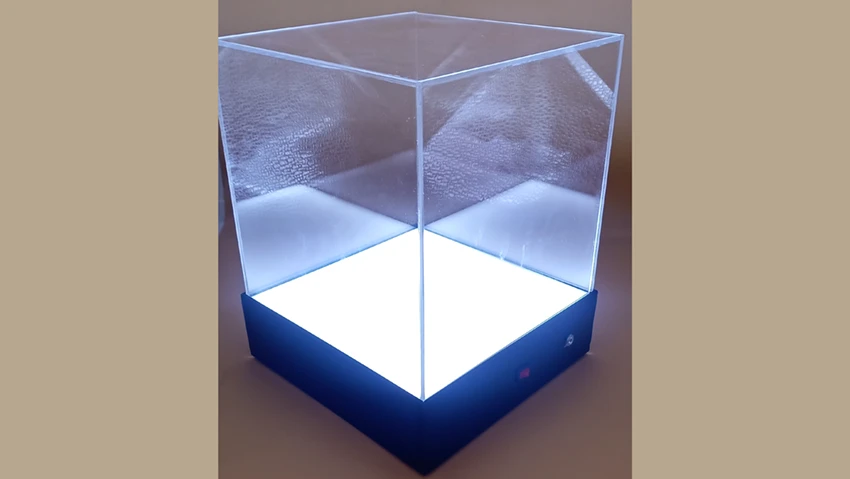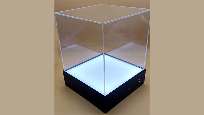 El soporte eleva la pieza, permitiendo que la luz LED se disperse de manera más efectiva alrededor del objeto. Esto no solo mejora la visibilidad, sino que también crea una iluminación más uniforme y llamativa, asegurando que cada detalle del objeto sea perceptible.