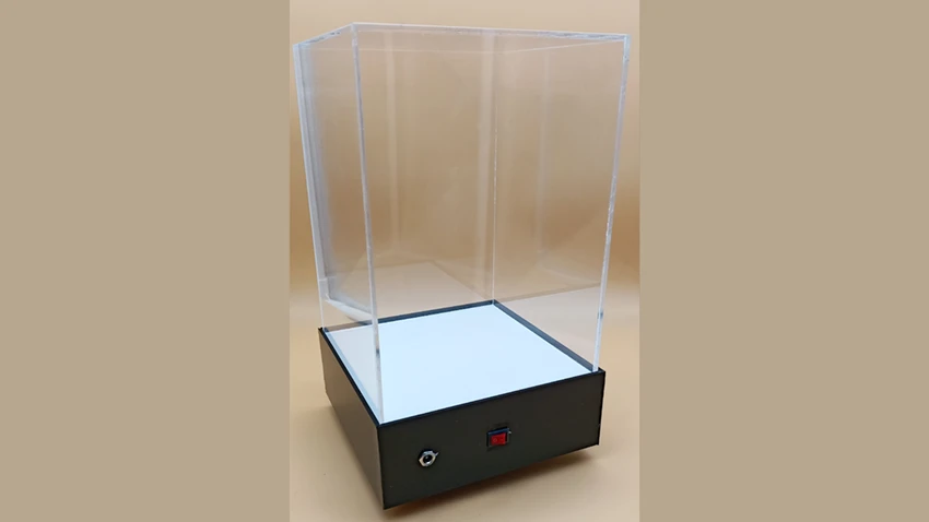 El soporte eleva la pieza, permitiendo que la luz LED se disperse de manera más efectiva alrededor del objeto. Esto no solo mejora la visibilidad, sino que también crea una iluminación más uniforme y llamativa, asegurando que cada detalle del objeto sea perceptible.